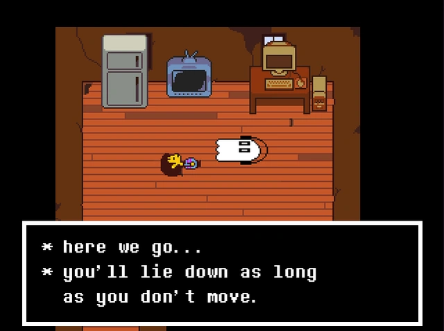 - ↑ "Bỏ lỡ bản ghi chú và khó khăn như bình thường." - Văn Bản Kiểm Napstablook trong chế độ khó