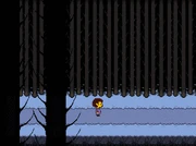 Sự xuất hiện lần đầu của Sans trong Rừng Snowdin.
